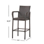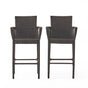 Bringing together elegant lines and a structure that is made to complement any outdoor space, our barstools tie together your decor in style. Crafted to superior excellence, these bar stools perfectly blend wicker and metal for a stunning addition to any backyard or patio. The wrapped wicker design brings a modern twist to a classic look, making this ideal for any style of decor. With a sturdy frame, this bar stool set also provides a minimalistic yet durable structure that offers a stylish flair to your space. Includes: Two (2) Barstools Material: Faux Rattan Frame Material: Iron Multiple Finish Options Assembly Required Dimensions: 24.80 inches deep x 24.35 inches wide x 46.50 inches high Seat Dimensions: 18.50 inches deep x 18.00 inches wide x 29.90 inches high Arm Height: 38.80 inches Weight Capacity: 400 lbs
