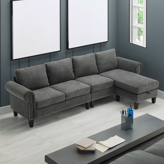 Expertly crafted with a solid wood frame, this L-shaped sectional sofa offers durable support for daily use. The detail design, embellished with nail head accents, adds an elegant touch to your living room. The storage ottoman...Regular price $1,115.72 -