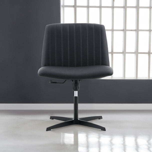 Regular price $173.80Crafted with black high grade PU material, this home computer chair offers a 360° swivel and adjustable cushion for optimal comfort. With a sleek black foot swivel and no wheels, it's perfect for makeup, studying, and...