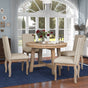 Adjustable dining table length: The dining table with an X-shaped base and keyed-through tenons, and small wooden blocks on the tabletop edge make this dining table more stable and durable. Taking into account the use of different scenarios, the table of this dining table set adopts a flexible design and the length can be adjusted. The round table's planked top is eased along the edges, then insert a leaf, it can extend to accommodate additional guests. Seats up to 6.